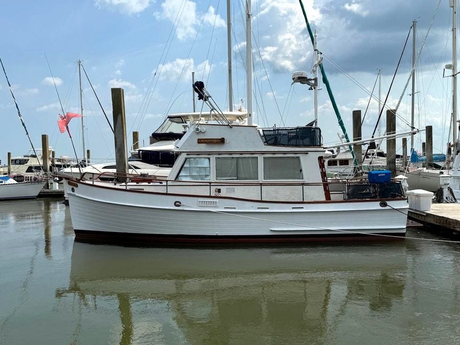 The 32 Sedan is the smallest hull Grand Banks ever built, often called the “Pocket Trawler.” It fits in a 35-foot slip, can be single-handed by anyone, and has a cult following that rivals the VW Beetle.