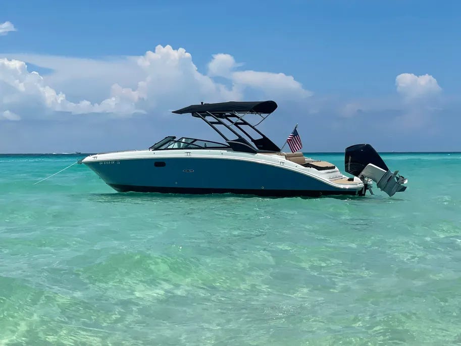 Imagine a perfectly sunny Saturday at the local sandbar. While the center console guys are forcing their guests to sit on hard coolers and the inboard bowriders are terrified of sucking sand into their expensive cooling systems, you glide into the shallow water, tilt your single outboard up, and deploy the bow ladder. Your boat isn’t just a vehicle; it’s a 29-foot floating patio with deep, plush seating for your entire extended family.